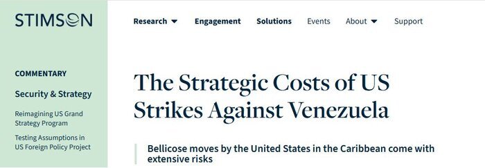 اندیکشده آمریکایی «استیمسون» (Stimson) در گزارشی با عنوان «هزینه‌های راهبردی آمریکا در صورت حمله به ونزوئلا» به این مساله پرداخته است که دولت ترامپ با حمله به قایق‌های غیرنظامی در دریای کارائیب موجی از محکومیت بین‌المللی را برانگیخته و اکنون احتمال حملات در خاک ونزوئلا را بررسی می‌کند؛ این سیاست تهاجمی، بی‌فایده و پرهزینه ارزیابی شده و رهبران آمریکای لاتین آن را نقض حاکمیت و تهدیدی برای ثبات منطقه می‌خوانند. این مطلب طی دو بخش منتشر خواهد شد، بخش‌اول این گزارش پیشتر منتشر شده است، در بخش دوم و پایانی این مطلب آمده است: